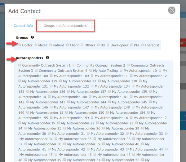 Choose what group the contact would go to. If they need to receive autoresponders, add to a specific one.