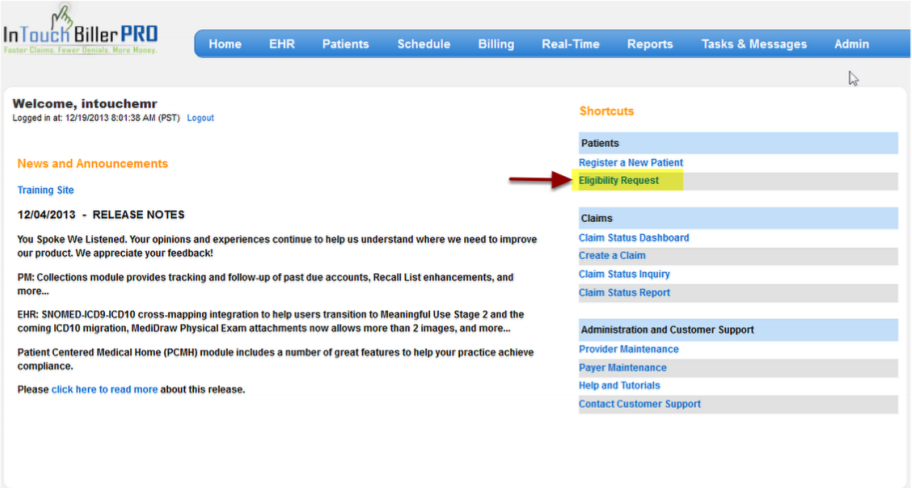 In Touch Biller Pro gives you a real-time, online eligibility verification function, which can potentially save a call to the payer to verify patient eligibility.