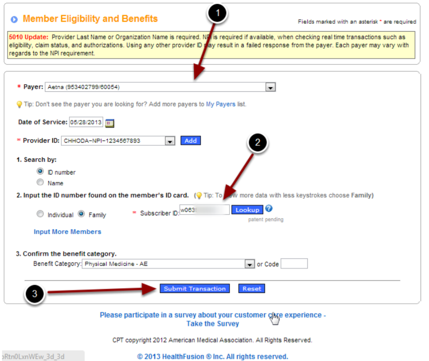 Step 3. Click 'Submit Transaction" Note - Depending on the payer requirements, you may be asked to enter additional information to verify eligibility.