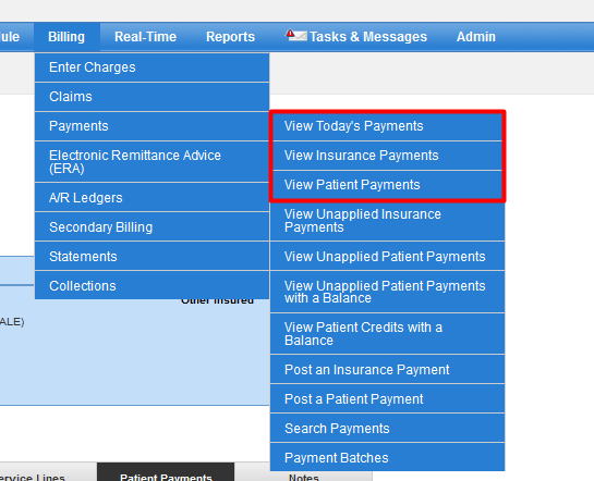 This section will show you how to view all of our payments by insurance or patient.