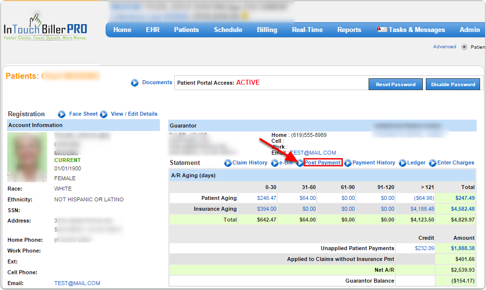 1. Click Post Payment under Statement section of the patient’s chart.