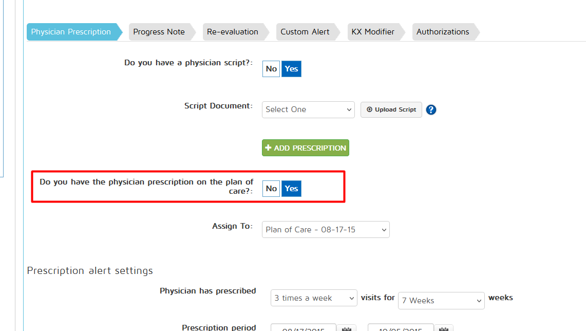 You will need to add the physician prescription in the Plan of Care on your documentation.