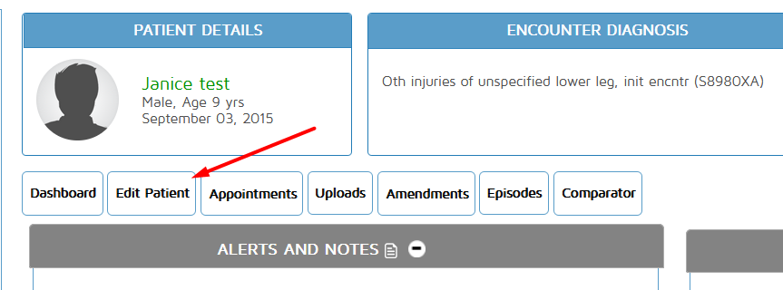 To set up patient alerts, go to the Patient Dashboard, and click on the Edit Patient tab at the top.