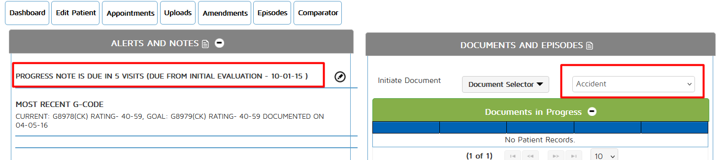 The Progress Note and Re-evaluation Alert can be episode specific.