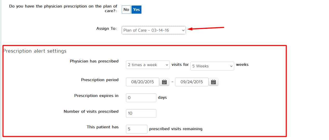 Assign the Plan of Care associated with the physician prescription. The rest of the fields will auto-populate with the information based on what was entered in the Plan of Care document