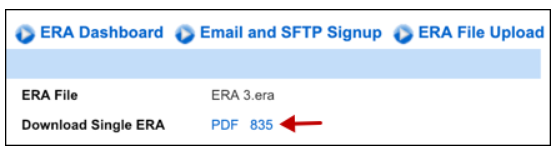 - Download All 835 ZIP: Download multiple ERAs into a compressed zipped 835 ANSI format.