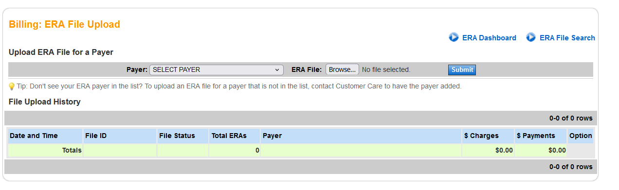- Click Submit. If uploaded successfully, these will operate as a MediTouch ERA.