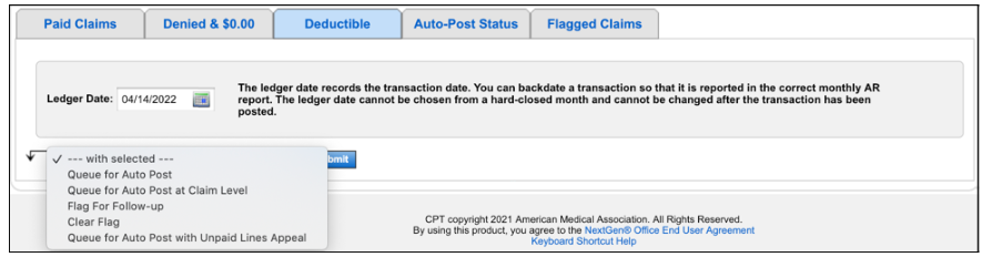 - Auto-Post Status: Displays the status of auto-posted claims.