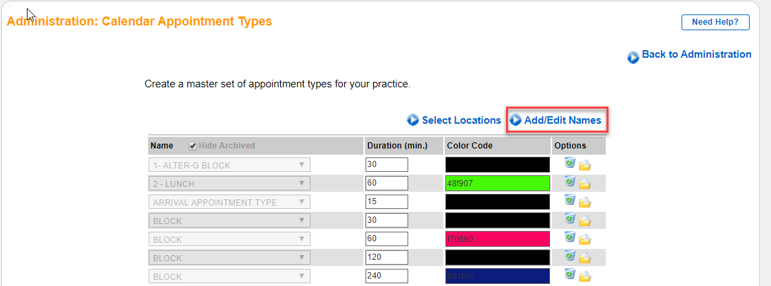 - Customize Appointment Types (optional): Click Add/Edit Names.
