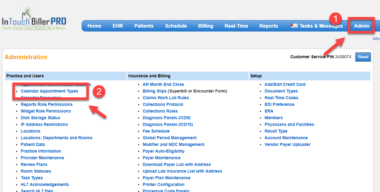 One of the first things that you need to set up when you have a new In Touch Biller PRO account is creating your own Calendar Appointment Types.