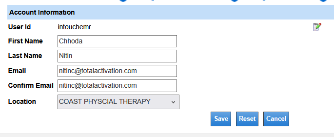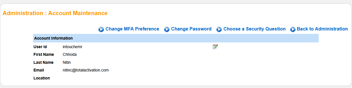 On the Account Maintenance screen, you will be able to edit the following: