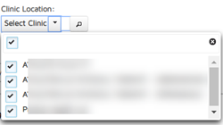 - Clinic Location - If there is more than one location for a clinic, you can select which location you would like to view appointments by clicking the tick box on the location.