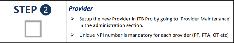 When a new provider is added in In Touch Biller Pro, a new login for that provider is created in In Touch EMR. We always use the name of the provider and the NPI number for their username. A calendar for that user will also appear in In Touch EMR. We highly discourage that you make changes to the provider maintenance screen in In Touch Biller Pro without notifying our customer support team as it may cause interruption to this integration.