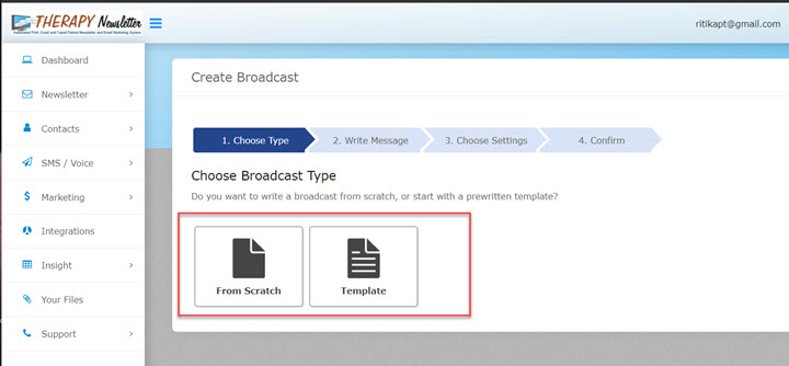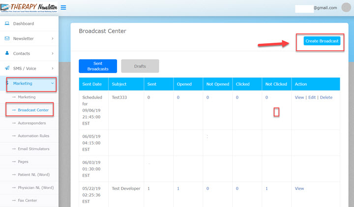 1 - On the Marketing tab, click on Broadcast, then click on Create Broadcast