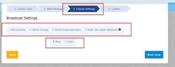 On Step 3, you can choose the settings, choose the recipients and when to send it out