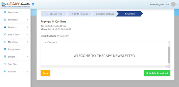Preview your work, then click on schedule broadcast to send it out