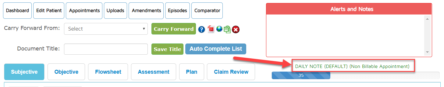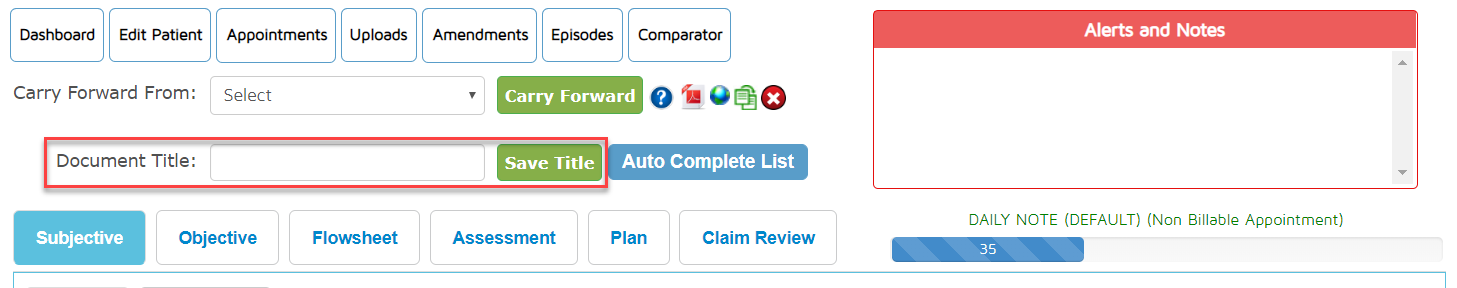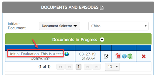 The document title will appear once you view the document from the list of Documents in Progress or completed documents in the patient dashboard. This will help distinguish each document once you have many other documents of the same title.