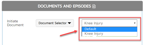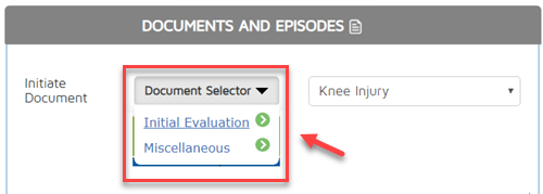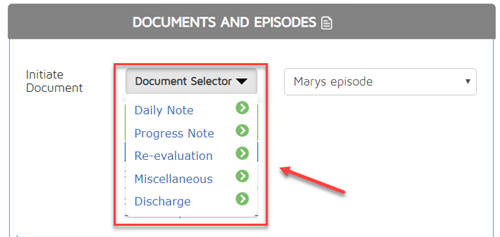 Once an episode has been chosen, choose the type of document. Click on the Initiate Document drop-down and choose from the list.