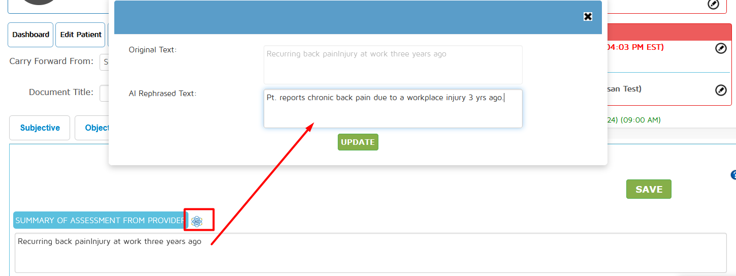 Note: For the Subjective area, the necessary fields need to have entries before it saves the documentation unless the Mandatory Override feature has been turned on. To review which are the necessary fields in the Subjective section, click here.