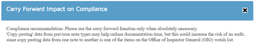 - this carry forward icon allows users to choose a patient and document that they wish to copy information from to be carry forward to this document in progress.
