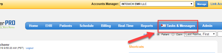 This help document will focus on the tasks and messages section. You can send messages from one user ID to another for interoffice communication. Likewise, you can send tasks from one user ID to another to inform someone that a task must be completed.