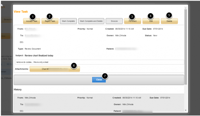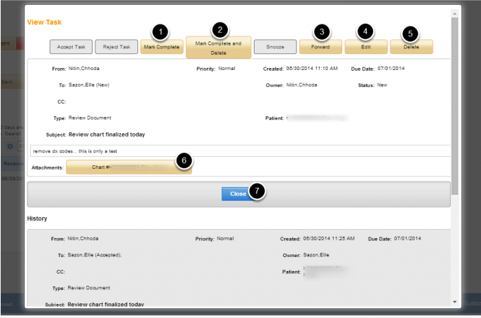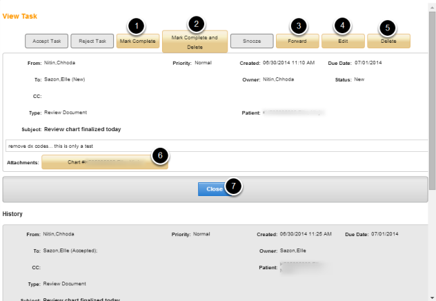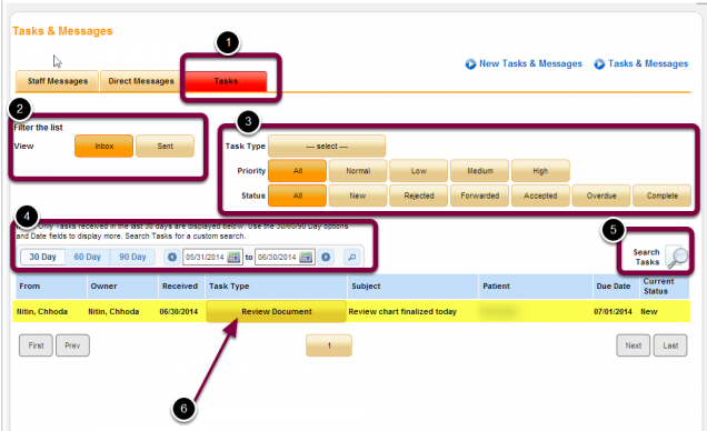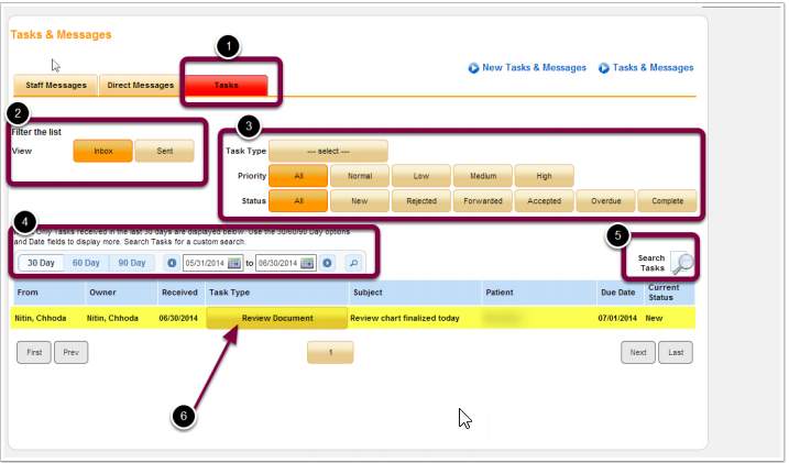 5. Click on Task # to view pending tasks for the patient.