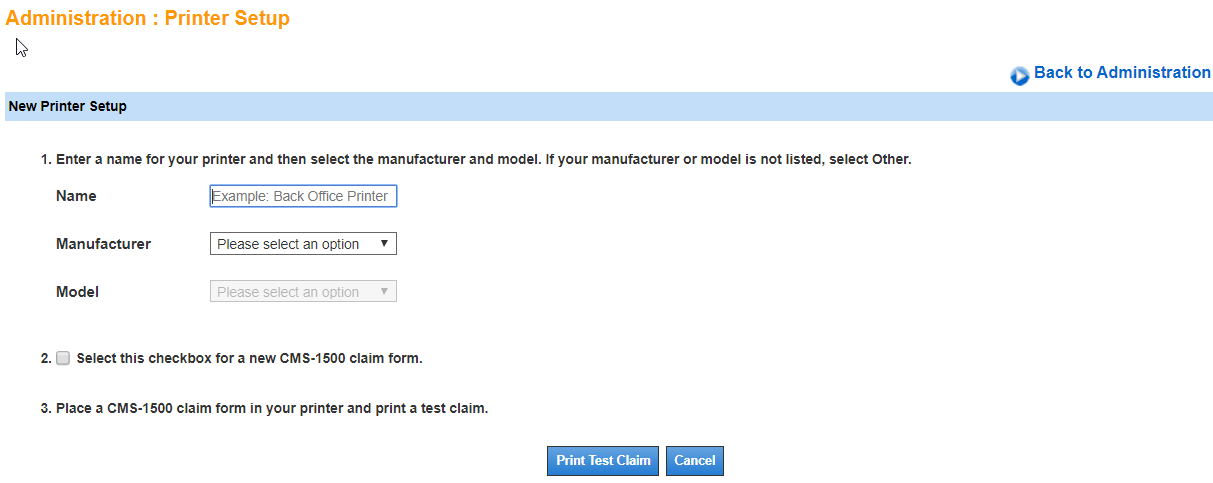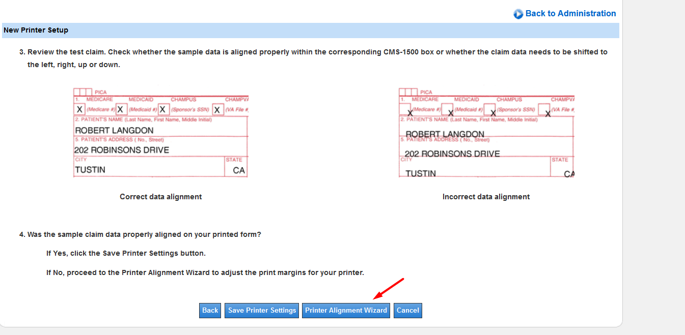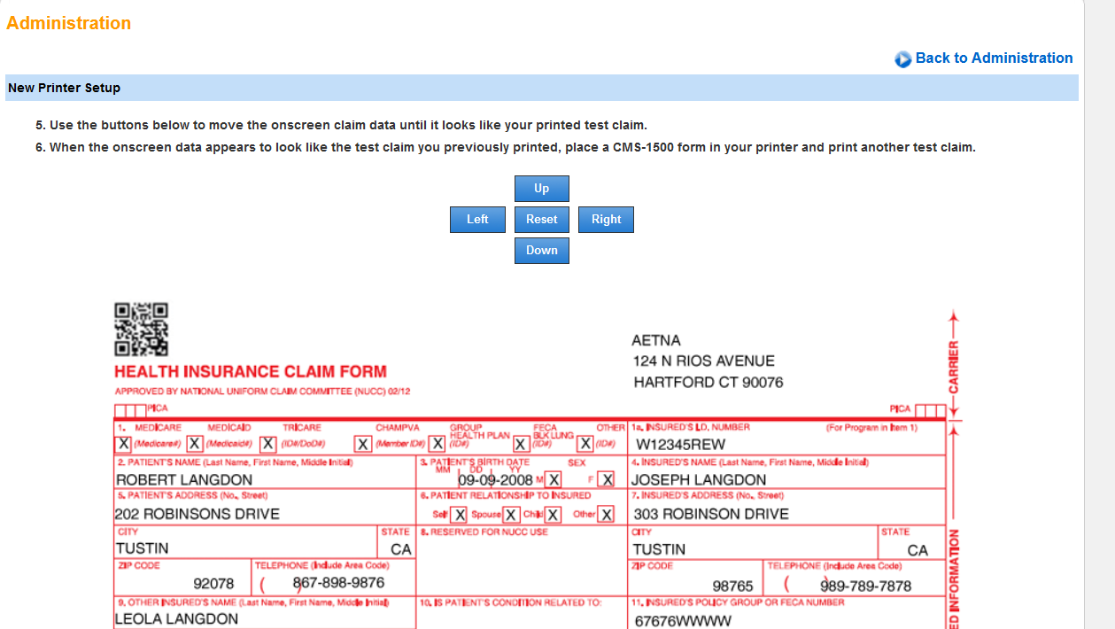 If you are printing paper claims, you must configure your printer. This page describes how to align your printer to a red CMS-1500 claim form.