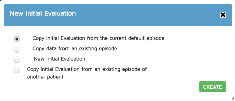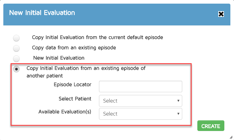 - Copy Data from an Existing Episode - this allows users to choose which episode he wants to copy the Initial Eval from