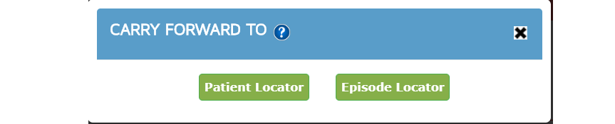 Once clicked, this icon shows a pop-up box that asks the users to select between patient locator or episode locator.