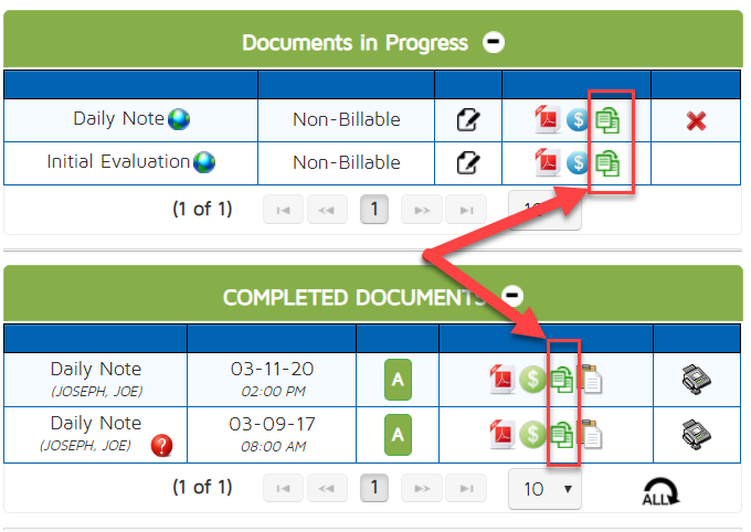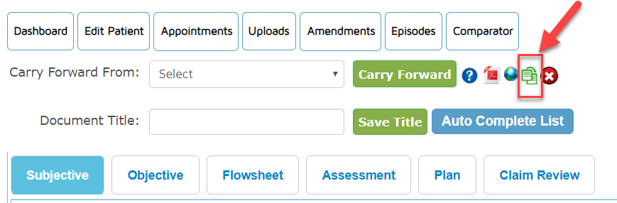 - In the patient dashboard - under the document in progress and completed documents, you will see the carry forward icon