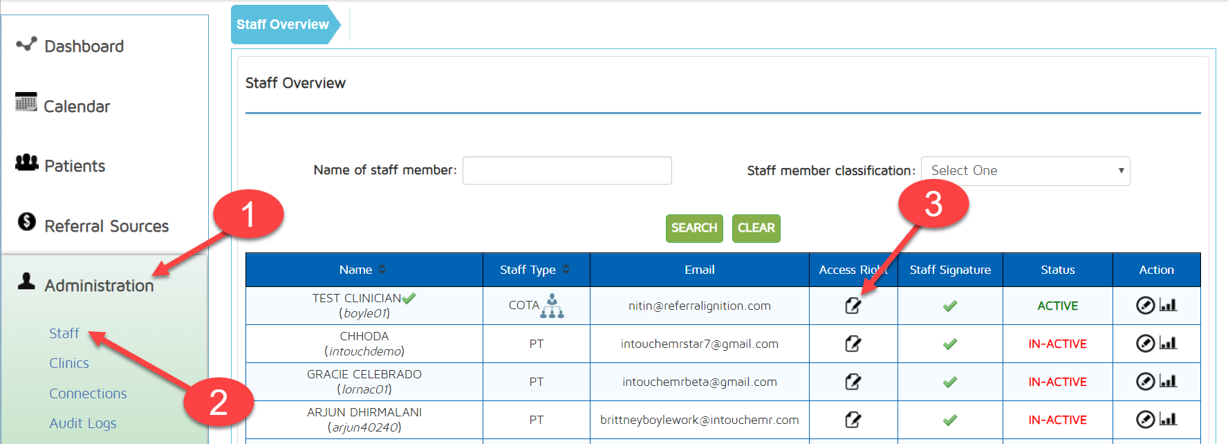 Note: Only the administrator of the account can assign access rights to other staff member and can nominate other users to be an administrator to obtain administrator privileges.