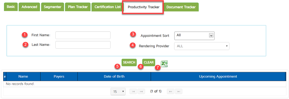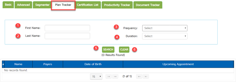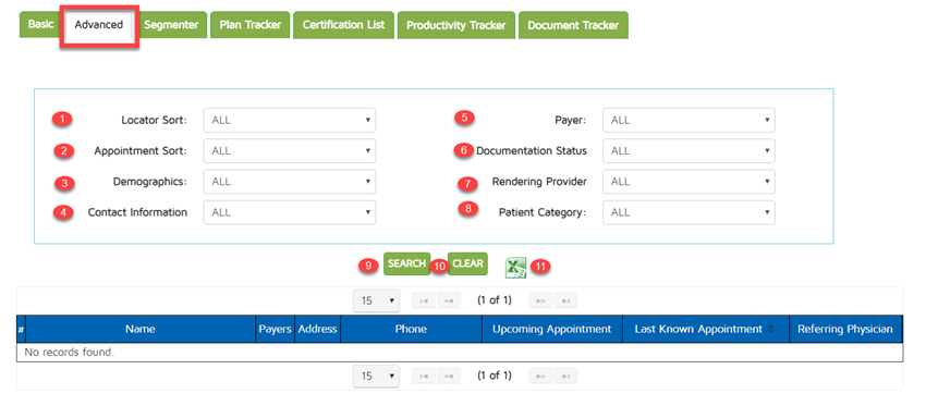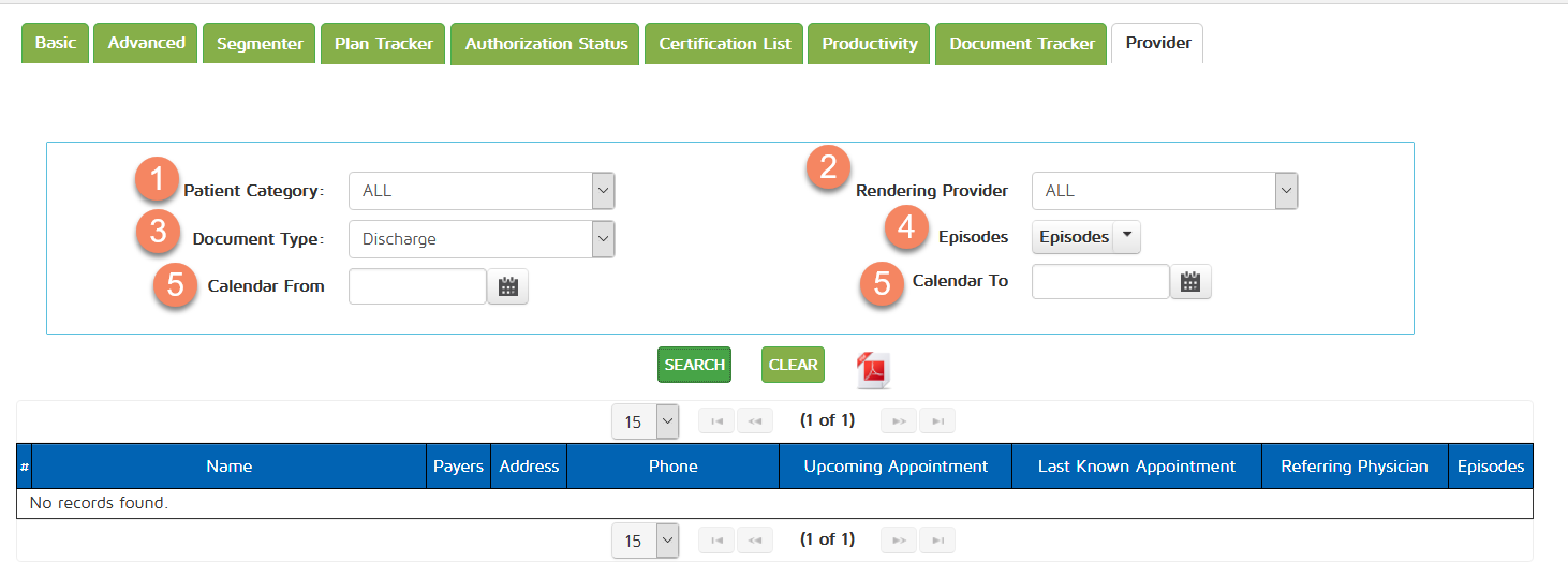 The Patient Locator allows you to get a list of patients using several different filters. There are several tabs under this page: