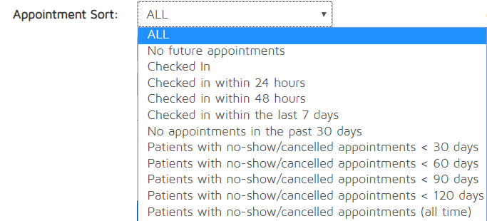 - Appointment Sort - This allows users to filter the report to show only patients with the same appointment