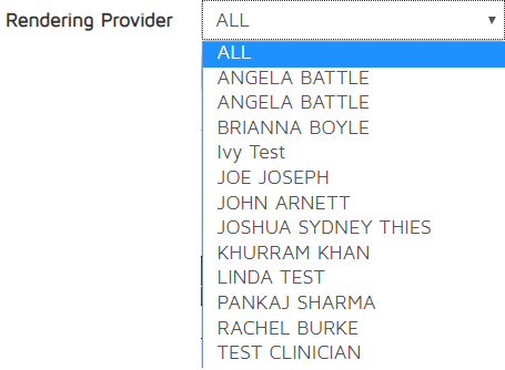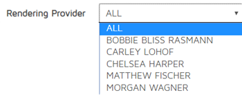 7. Rendering Provider - This allows the user to filter the search based on which doctor was assigned as the referring provider on the patient chart