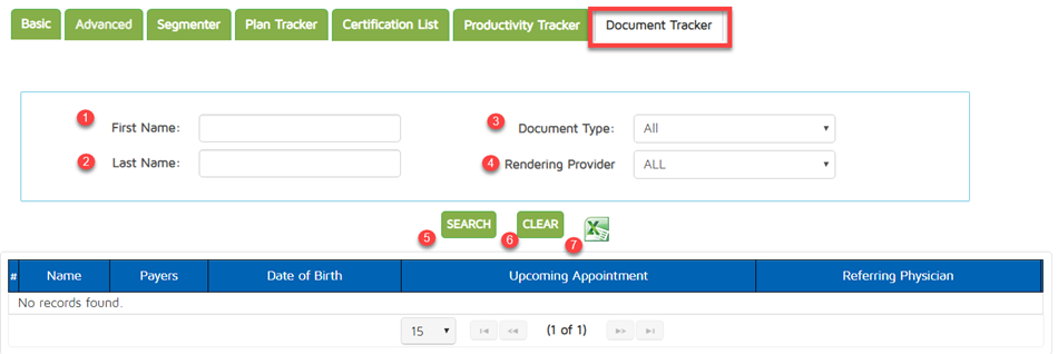 If you search with 2(Rendering provider) and 3(Document Type) – this will generate a list of patients that have a selected document type finalized by the selected provider.