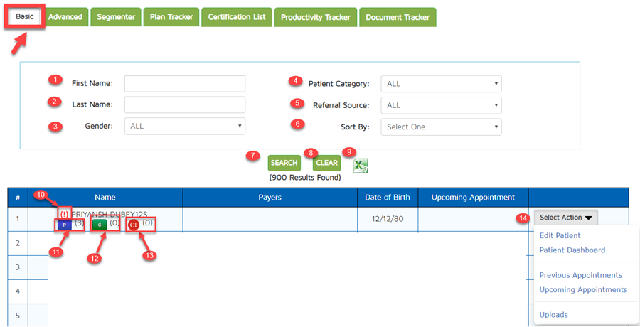 8. Patient Category - This allows the user to filter the search based on whether the patient is active or inactive