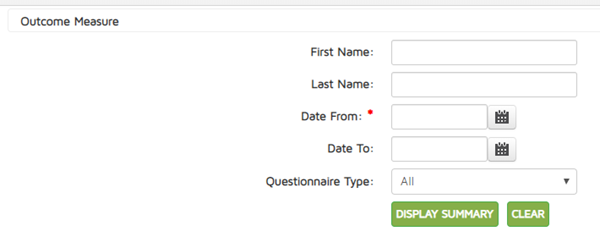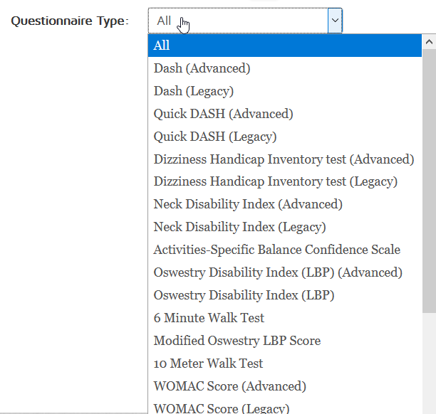 The user can also choose from the drop-down option if there is a specific Outcome Measure questionnaire to filter.