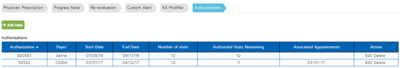 In the patient dashboard, you will be able to see authorizations.