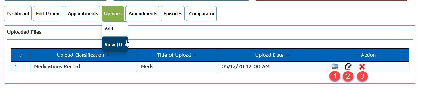 To review all previous files that has been uploaded, click on the View option under the Uploads Tab in the Patient dashboard