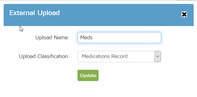 Click on ADD to upload a new document such as a medications list, signed plan of care or any other external record. This new page will appear