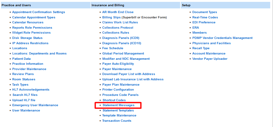 You can customize the standard and AR aging messages that appear on the patient statements. AR aging messages are based on the how many days a payment is past due.