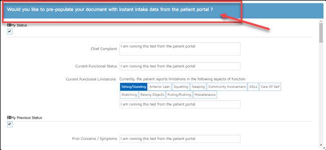 The only exception to this is if the patient logs in to the patient portal and adds/updates information in their instant intake. In that event, the instant intake dialogue box will appear the next time the clinician documents an initial evaluation, re-evaluation or progress note.