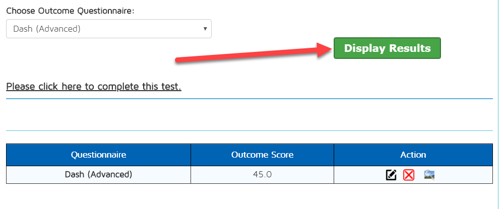 But the clinician must enter the test score and click the Save Outcome Measure.