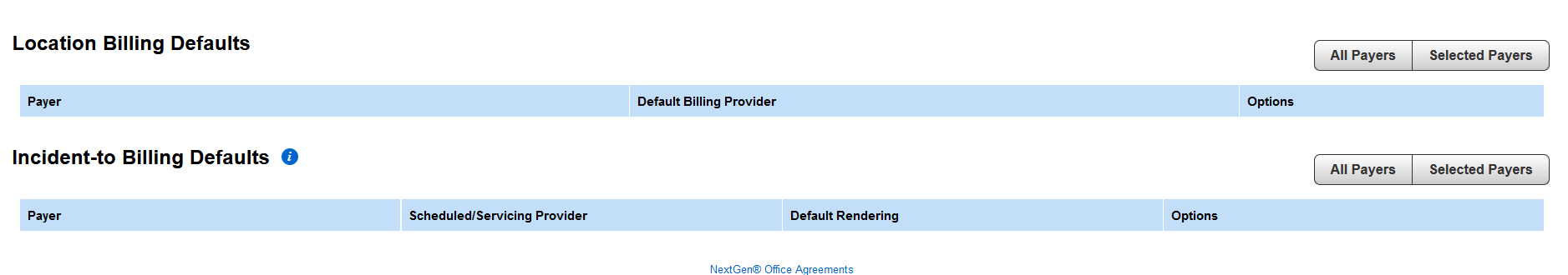 You have the option to add default billing providers for either selected payers or for all payers.