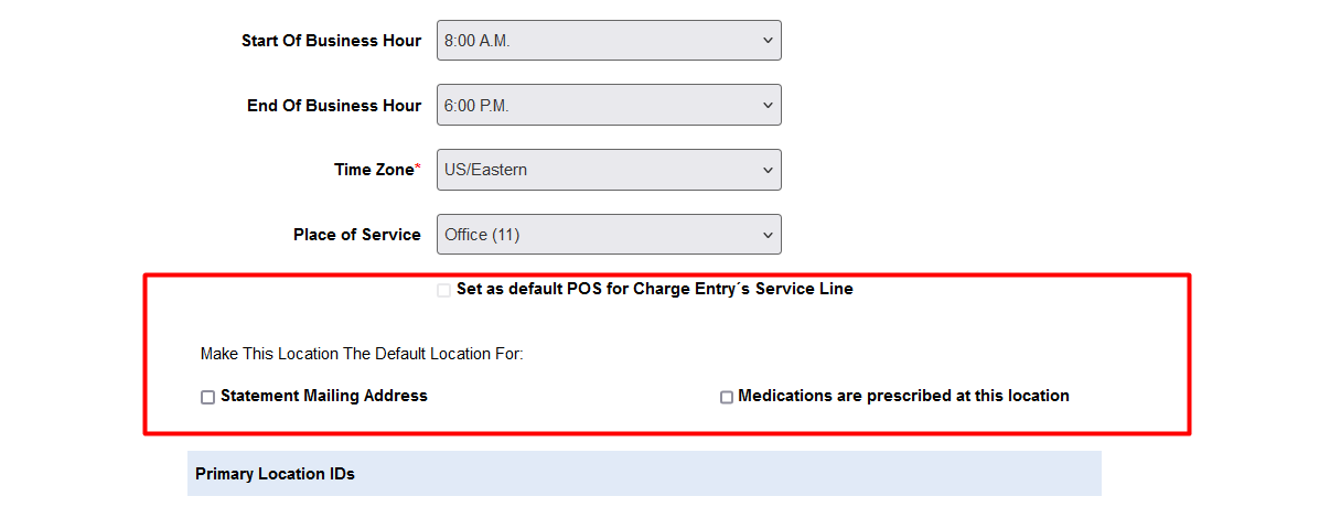 - Set the default place of service for all service lines when the location is not selected in charge entry.