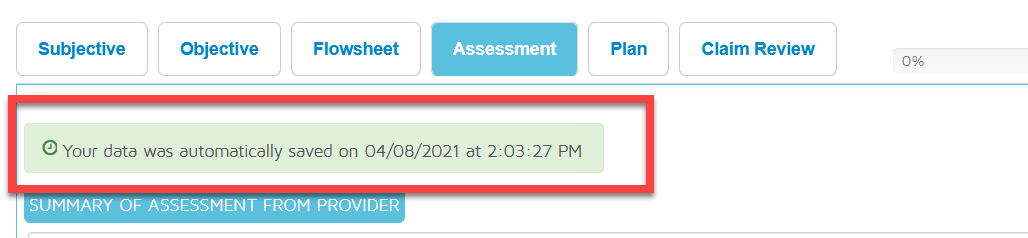 .Note: For the Subjective area, the necessary fields need to have entries before it saves the documentation unless the Mandatory Override feature has been turned on. To review which are the necessary fields in the Subjective section, click here