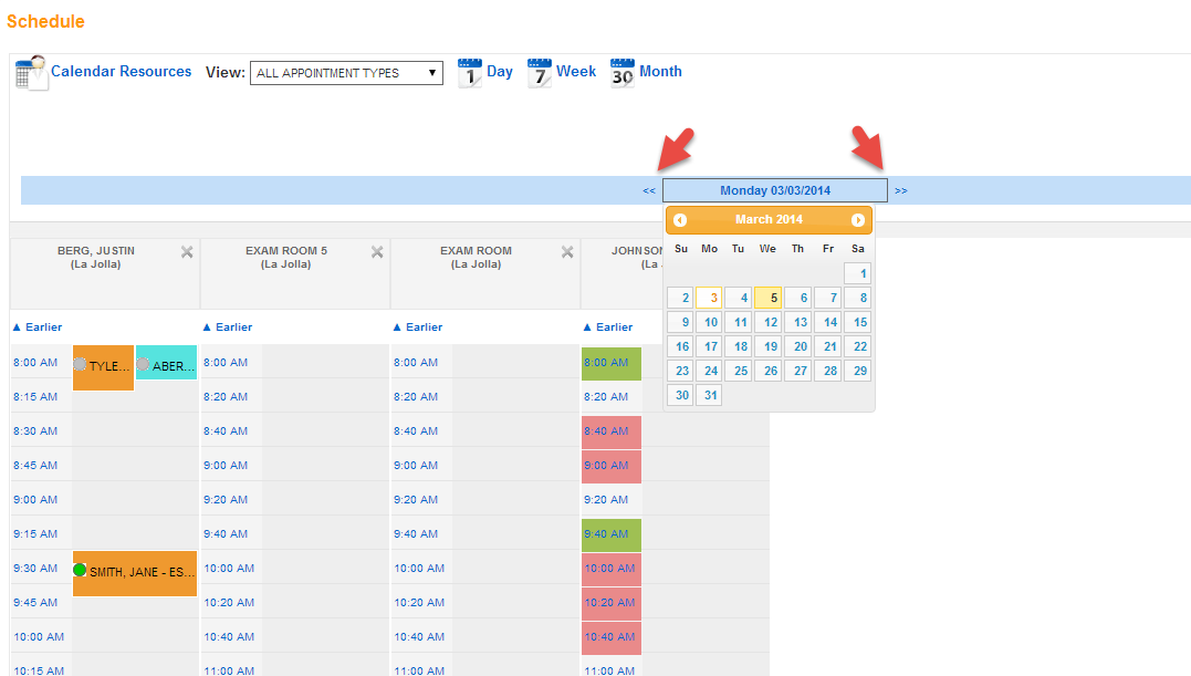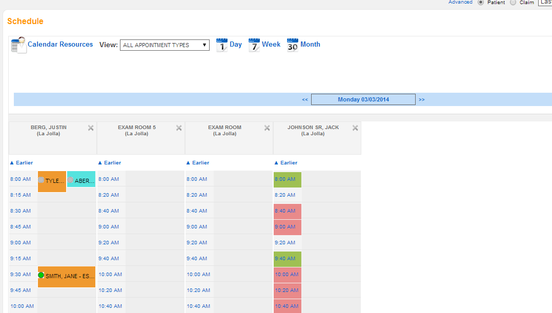 - Clicking on "Day View" displays the daily schedule for all providers.