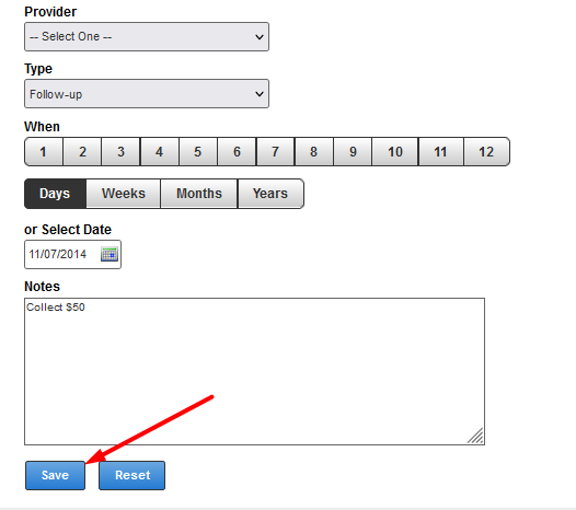 - If you create a follow-up and save it to the encounter, it is sent to the PM Recall List.