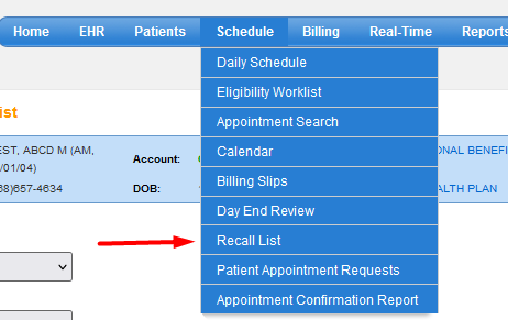 Hover your mouse on Schedule, then click on Recall List.