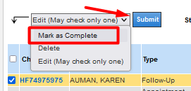 - Select Mark as Complete from the drop-down menu.